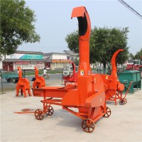 由電機(jī)作為配套動(dòng)力。將動(dòng)力傳遞給主軸,主軸另一端的齒輪通過齒輪箱、萬向節(jié)等將經(jīng)過調(diào)速的動(dòng)力傳遞給壓草琨,當(dāng)待加工的物料進(jìn)入上下壓草琨之間時(shí),被壓曹錕夾持并以一定的速度送入鍘切機(jī)構(gòu),經(jīng)高速旋轉(zhuǎn)的刀具切碎后經(jīng)出草口拋出機(jī)外。另外一種是施掛式的,也就是拖拉機(jī)上拖掛的,是由柴油機(jī)為動(dòng)力的。