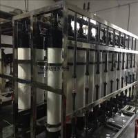 原水→原水加壓泵→預(yù)處理→精密過濾器→一級(jí)反滲透→中間水箱→二級(jí)反滲透→中間水泵→EDI系統(tǒng)→拋光混床→微孔過濾器或(UF)→用水點(diǎn)