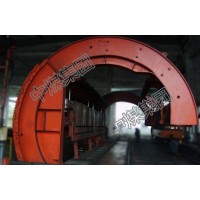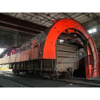 C型翻車機采用“C”型端盤,為箱形截面結(jié)構(gòu),利用其抗彎、抗扭的優(yōu)點彌補C型結(jié)構(gòu)的不足。使用箱型梁聯(lián)接,固定平臺,液壓壓車,液壓靠車,消除了對車輛的沖擊,有效釋放車輛彈簧能量,回轉(zhuǎn)更加平穩(wěn)。結(jié)構(gòu)簡單、輕巧,驅(qū)動功率小。液壓站可采用機上式和地面式兩種。翻車效率高、操作簡單,整個過程可實現(xiàn)全自動化。適用翻卸車輛的范圍廣,并設計出適應C80的“C”型翻車機。適合配備重車調(diào)車機系統(tǒng)?;剞D(zhuǎn)式雙車翻車機主要由端盤、托車梁、靠車梁、壓車機構(gòu)、靠車機構(gòu)、托輥裝置、驅(qū)動裝置及液壓系統(tǒng)等組成。