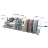 沸石轉(zhuǎn)輪吸附濃縮裝置采用吸附-脫附-濃縮焚化三項(xiàng)連續(xù)程序,主要用于有機(jī)廢氣的治理; 特別適合于大風(fēng)量,低濃度場(chǎng)合。該吸附裝置以陶瓷纖維為基材,做成蜂窩狀的大圓盤(pán)輪狀系統(tǒng), 輪子表面涂覆疏水性沸石做吸附劑。沸石轉(zhuǎn)輪吸附濃縮裝置主要由廢氣預(yù)處理系統(tǒng)、分子篩轉(zhuǎn)輪濃 縮吸附系統(tǒng)、脫附系統(tǒng)、冷卻干燥系統(tǒng)和自動(dòng)控制系統(tǒng)等組成。轉(zhuǎn)輪后一般有后處理系統(tǒng),保藍(lán)處理工藝為沸石轉(zhuǎn)輪+RCO、沸石轉(zhuǎn)輪+RTO。